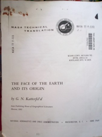 [1] Katterfeld, G.N; La Faz de la Tierra y su Origen; Status Publishing House of Geographical Literature; Moskow, 1962; en “National Aeronautic and Space Adminsitraction”; Washington, D.C; 1969; p. V.
