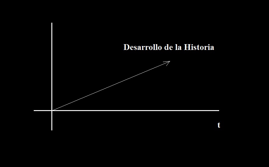 Interpretación gráfica de la filosofía de la historia en forma lineal progresiva, compartida en la Edad Media por Agustín de Hipona, en la Época Moderna por Voltaire, y en el siglo XIX por Comte, y en geografía por Louis Vivan de Saint-Martin.