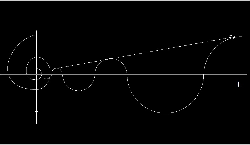 Interpretación gráfica de la filosofía de la historia del desarrollo en espiral, que dialécticamente combina las interpretaciones, cíclica abierta y lineal; utilizada por Hegel desde el punto de vista de la dialéctica idealista, y por Marx desde el punto de vista de la dialéctica materialista; es utilizada en geografía tanto por Kretschmer, como Clozier.